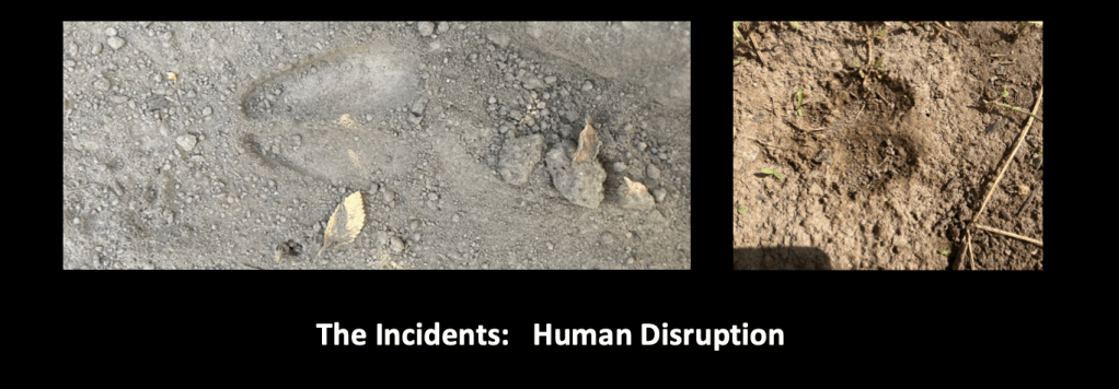 It’s also interesting that Pi didn’t stay at the intersection of the river bank and the fence. She could have called her fawns from there where they could have easily gotten around the fence like she had done. Or even come back up the inside of fence line to “get” them. But she didn’t. She tried to find her missing family members through the impenetrable fence. Limits to information processing? The turmoil of the moment? Just following the sounds of the fawns? It’s another piece of why I called this incident “unsettling.” I wondered if her choice to keep going without her fawns was a bit of a deficit in mothering capacity, making a choice about physical movement through some chaos. If it’s more difficult to navigate with three legs this year, she might be economizing how she moves about at times. Chaos in the dark seems a reasonable situation to economize. In the end, the fawns were fine, but I’d love to clear up the overgrown path that could have much more easily united doe and fawns.