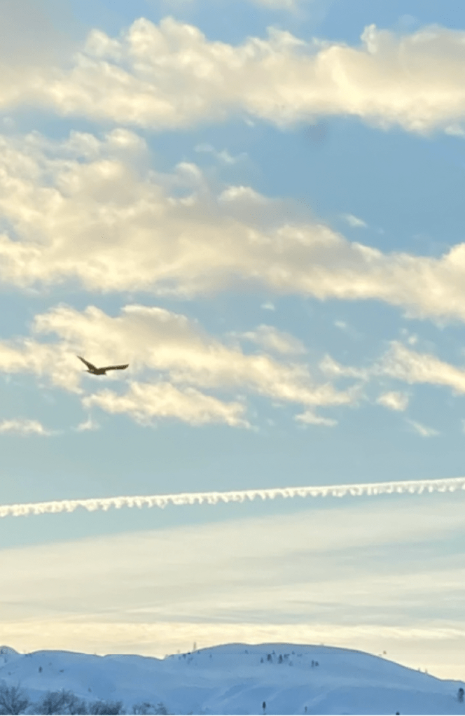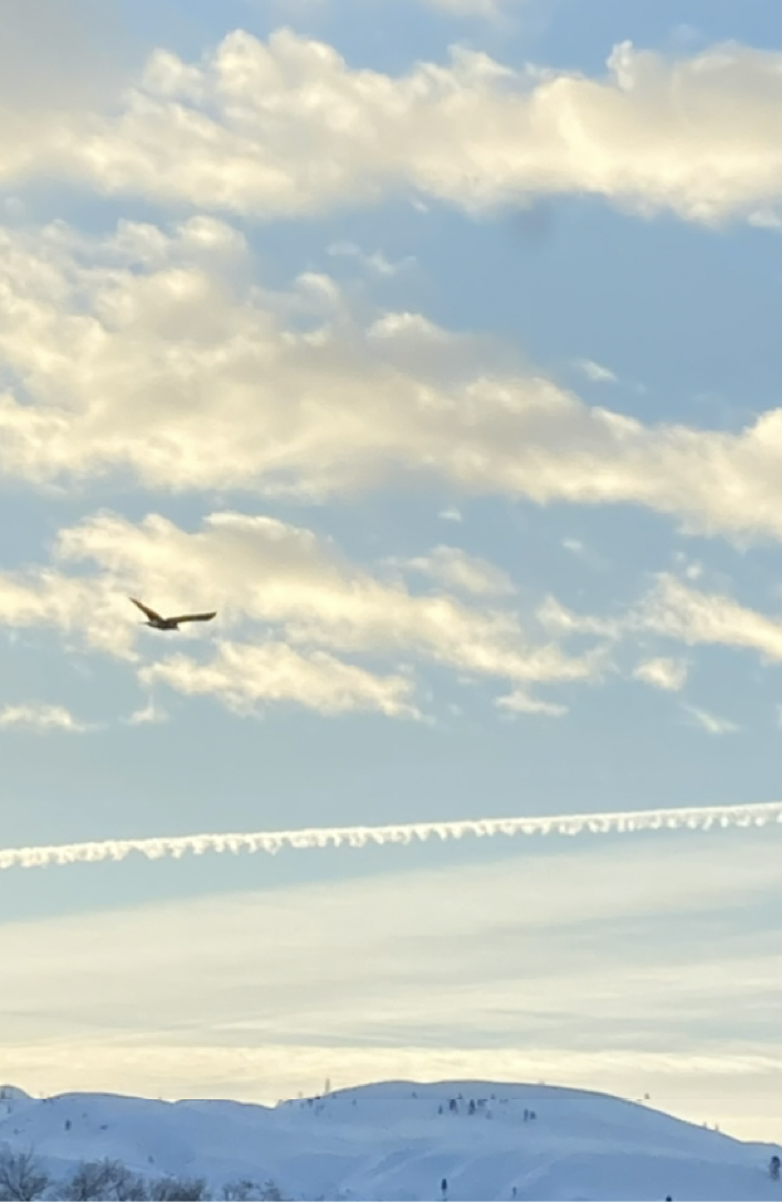 Above: Early morning osprey and disintegrating chem trail over the Okanogan River in the backyard. The extreme winter we’re seeing has been beautiful, but it’s also been tough.